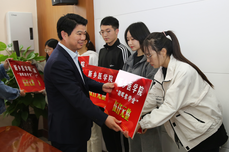 2020年10月27日上午,新鄉(xiāng)醫(yī)學(xué)院2020年度“朝暉獎學(xué)金”捐贈儀式暨助資育人座談會在新鄉(xiāng)醫(yī)學(xué)院北校區(qū)三樓會議室舉行。東安控股集團(tuán)董事長堵召輝先生、總監(jiān)曹若天,新鄉(xiāng)醫(yī)學(xué)院黨委書記陳建國、黨委委員副書記赫洪軍等領(lǐng)導(dǎo)人和學(xué)生代表參加了頒獎儀式和座談會。