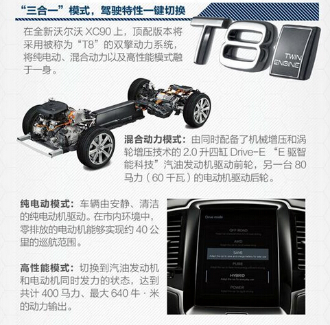 從今年5月起,復(fù)興中的沃爾沃汽車發(fā)布了未來旗艦級產(chǎn)品全新沃爾沃XC90的內(nèi)飾設(shè)計、SENSUS車載智能交互系統(tǒng)以及B&W音響系統(tǒng)等一系列產(chǎn)品亮點。今日,全新沃爾沃XC90關(guān)注的動力系統(tǒng)閃亮登場,其所搭載的Drive-E“E驅(qū)智能科技”動力總成實現(xiàn)了強勁動力與綠色之間的平衡。