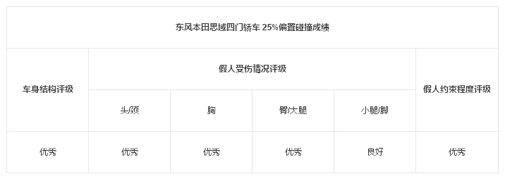 25%偏置碰撞總體評價:優(yōu) 秀