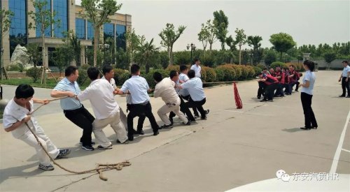 一 、東安集團(tuán)第二屆春季運(yùn)動(dòng)會(huì)拔河比賽于5月24-29日進(jìn)行,集團(tuán)工會(huì)充分調(diào)動(dòng)大家的積極性與參與度。本次拔河比賽共有10支隊(duì)伍參加比賽,每支參賽隊(duì)伍加強(qiáng)團(tuán)隊(duì)配合,敢打硬拼,充分發(fā)揚(yáng)亮劍精神,極有風(fēng)采,留下各自精彩時(shí)刻。